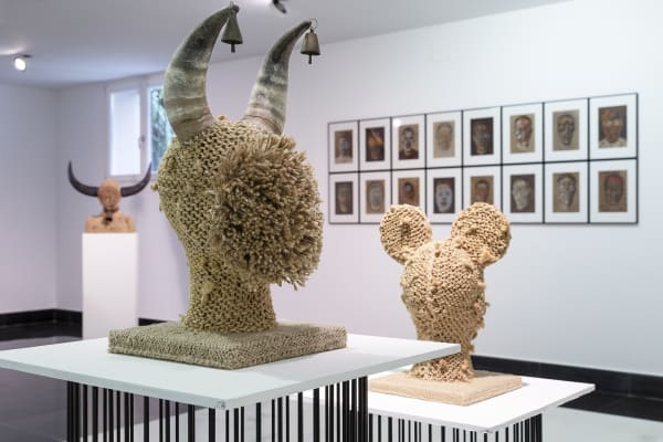 La exposición que se presenta consta de más de 40 obras entre las que se encuentran una instalación de 2014 junto a esculturas y pinturas del último año. La muestra arranca en la primera sala con dos figuras, dos niños de lana y plástico que interactuan entre si, desde su posición de protágonismo en la gran entrada de la galería se muestran indiferentes al mundo que les rodea y les observa.