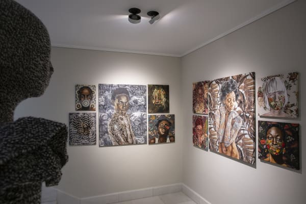 Pinturas en las que la artista desarrolla el concepto textil dentro de la pintura, rostros de mujeres que  se camuflan entre coloridas telas y bordados. Medias elaboradas en lana e intervenidas con calzados que individualizan diferentes personajes de muy diversos ámbitos definidos por la artista.