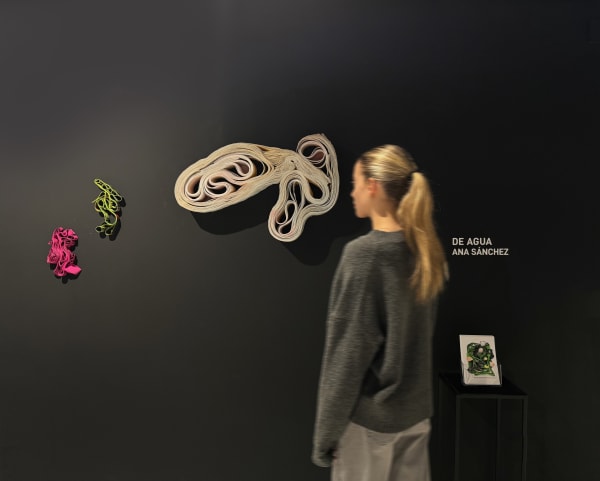 La nueva exposición de Ana Sanchez nos invita a sumergirnos en un universo de formas orgánicas y dinámicas que evocan el movimiento constante y cambiante del agua.