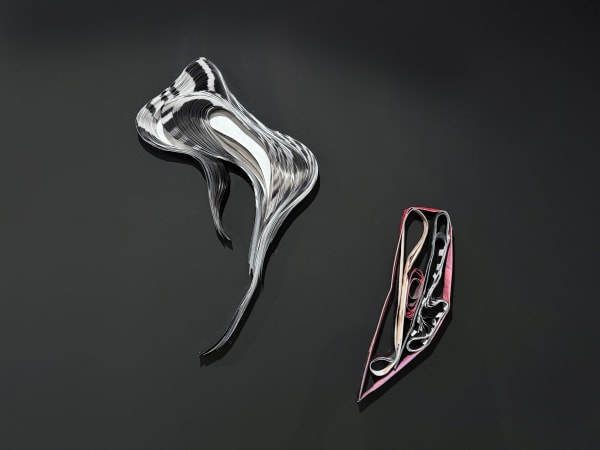 A través de esculturas hechas completamente en papel reciclado, Ana transforma materiales cotidianos en obras de arte que fluyen, vibran y parecen cobrar vida. Estas piezas, instaladas en la pared como relieves tridimensionales, transmiten una energía que oscila entre lo etéreo y lo terrenal, sugiriendo la fluidez de un río, las ondulaciones del mar, o las gotas de lluvia deslizándose por una superficie.