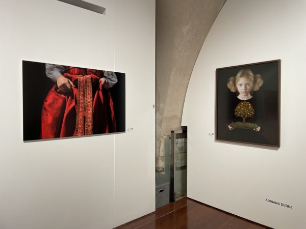 Adriana Duque: Her photographic images allude to tableux traditions that include the backdrops used by nineteenth century commercial portraitists. Adriana’s photographs play with the idea of endless childhood, complemented by elements borrowed from rural contexts. The artist has developed the use of photographic scenes that address feminine adolescent identity using borderline narratives. In her latest project, presented at Photo London; "All that tries to reveal itself", Duque's famous princesses abandon their sumptuous golden crowns to adorn themselves with subtle plant-inspired membranes covered in light and translucent fabrics that shelter small and fragile fragments of a still-living nature. A fabric of energy that connects them and also isolates them; they both protect and trap the fragility of women’s existence.