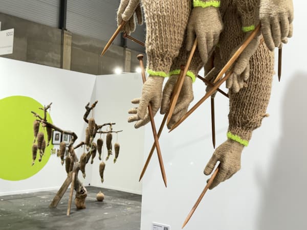 Nanon MorsinkUnder construction, 2023Rope, wool, wooden knitting needles art hands & hanger60 x 50 x 15 cm