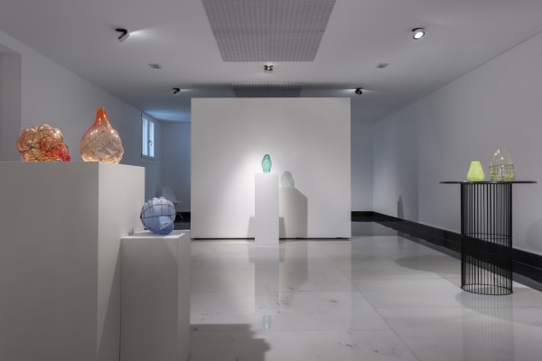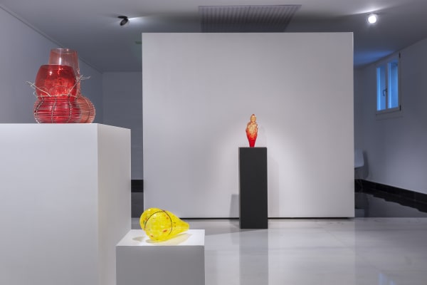 All the pieces presented in the room are part of the AA Murano contemporary glass line and have been blown in Murano in the Antichi Angeli oven, and are therefore unique and surprising pieces. The collection stands out for its organic shapes and bright colors typical of the Murano tradition.