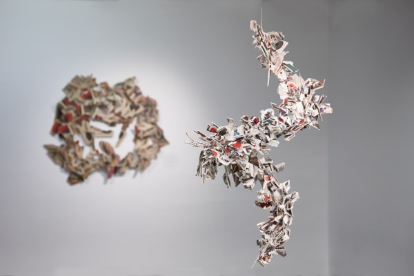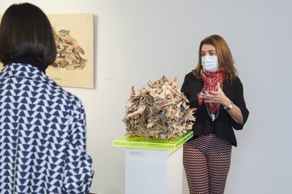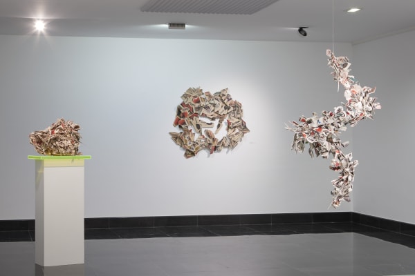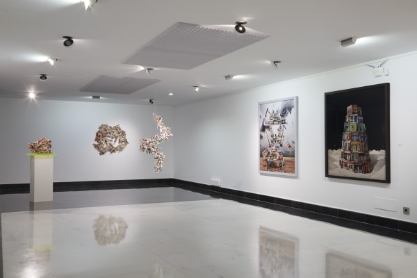 Thus Rosa Muñoz, in this new production, starts from photographs of stacked art books, formalising sculptural compositions of abstract impression, where each piece is intimately interconnected with the other, as an essential part of a whole. An accurate formula for conceptually approaching the viewer to the infinite process of construction of contemporary art, showing its genealogy and the generation of knowledge through time. These works of countless readings transcend their own conceptual intention to evoke a neuronal morphology, representing surprising and weightless brains that show the anatomical maps of thought.