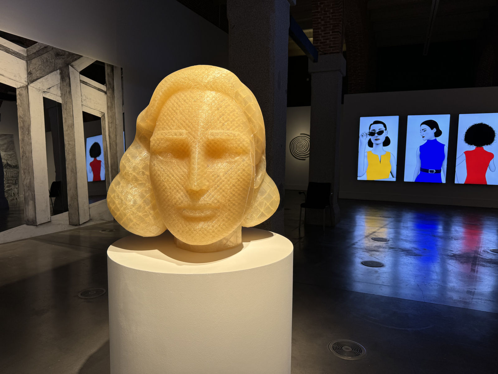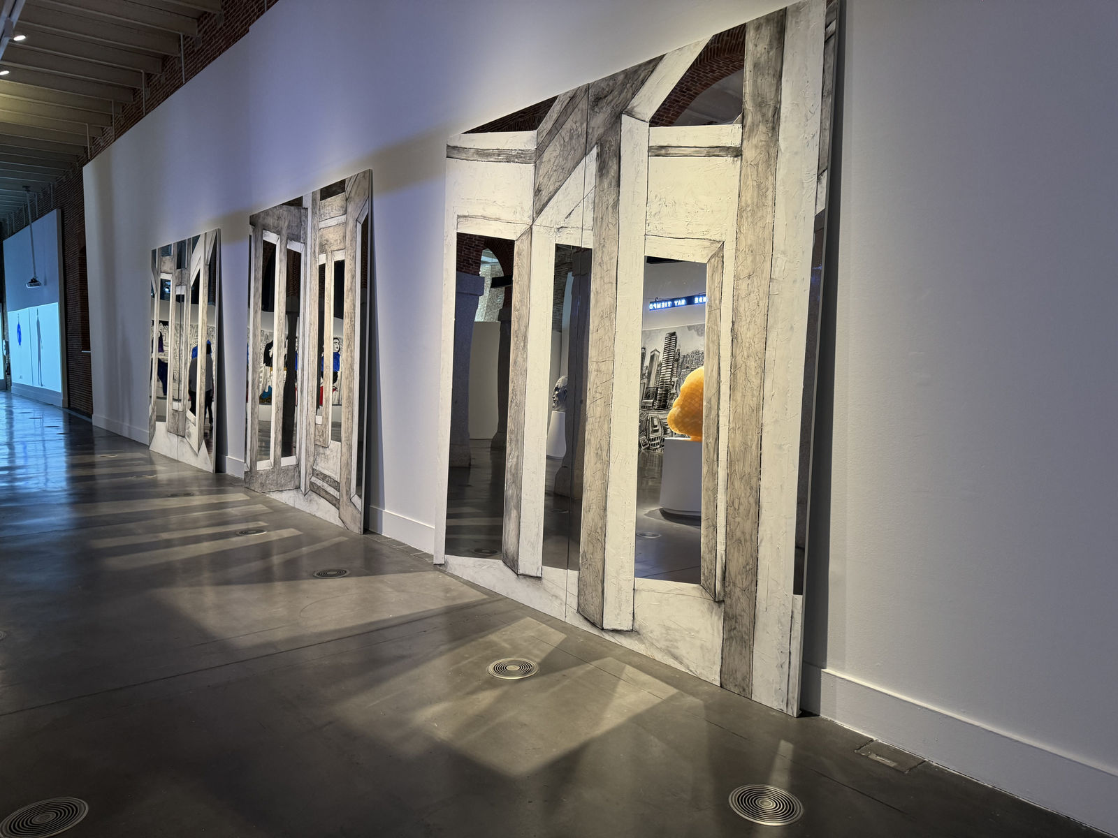 Every time you look, the spectator is at the centre of the action. It is the physical part that wanders through the room and completes it. In his reflection he perceives a present and future world to which he belongs. The visitor encounters exterior and interior spaces and architectures, accompanied by archetypal inhabitants who walk through the city. Environments to which they belong and avatars in which they recognise themselves.